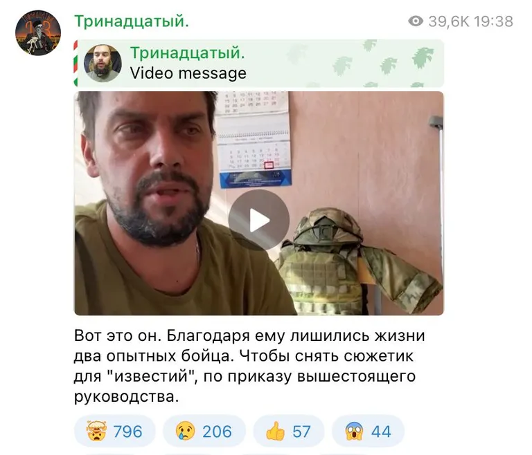 Також у мережі поширюють фото “воєнкора”, через якого загинув комбат. Ба більше, окупанти обурені, що атаку дронів та смерть військових показали у прямому ефірі на пропагандистському каналі.
