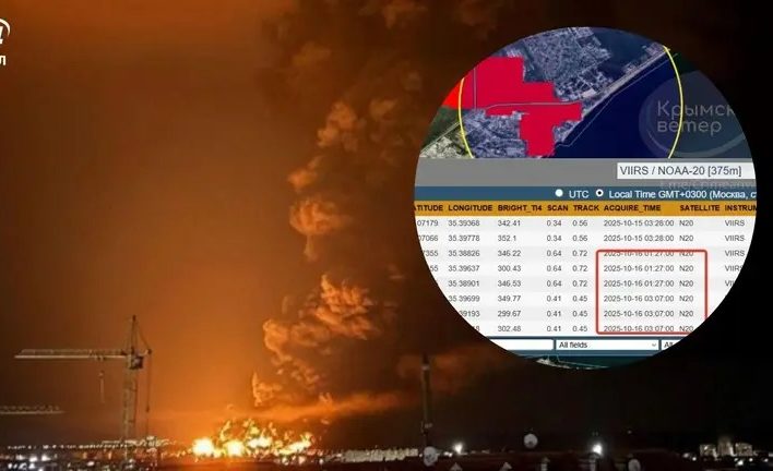 Наразі, 16 жовтня, нафтовий термінал горить досі. Тепловий “відбиток” осередків пожежі не зменшується. Це свідчить про активне горіння.