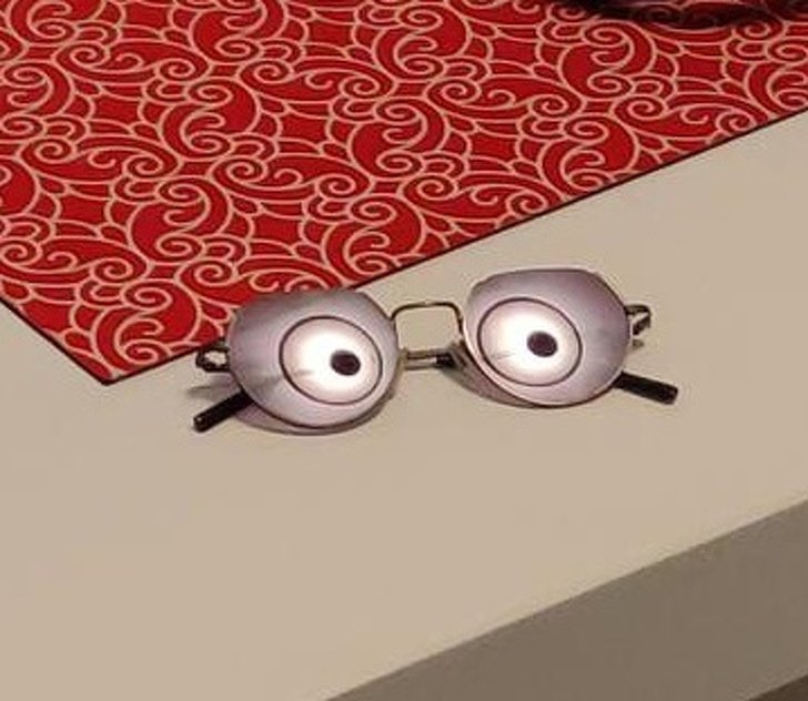 Здається, що окуляри здивувались, а в них просто відображаються лампочки Фото: adme
