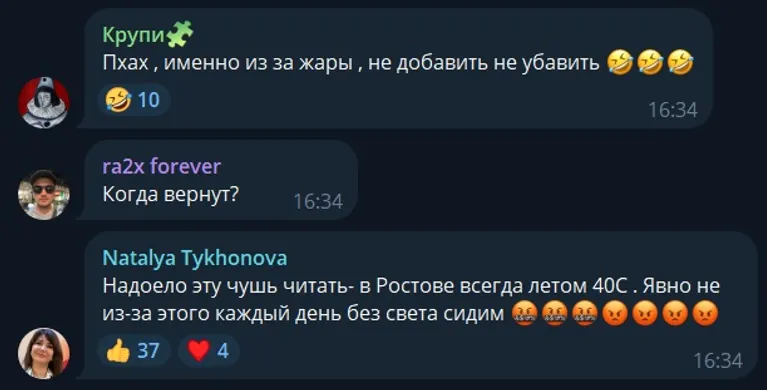 Міненерго Росії стверджує, що відключення в Ростовській області нібито почалися “через спеку”. Водночас місцеві жителі не вірять у це, оскільки до цього літа відключень в регіоні не було.