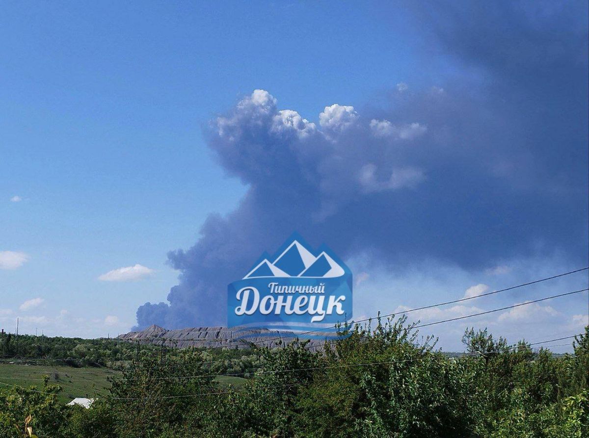 Перші повідомлення про “бавовну” у Ясинуватій з’явилися близько 13:27. На кадрах можна побачити високий стовп чорного густого диму.