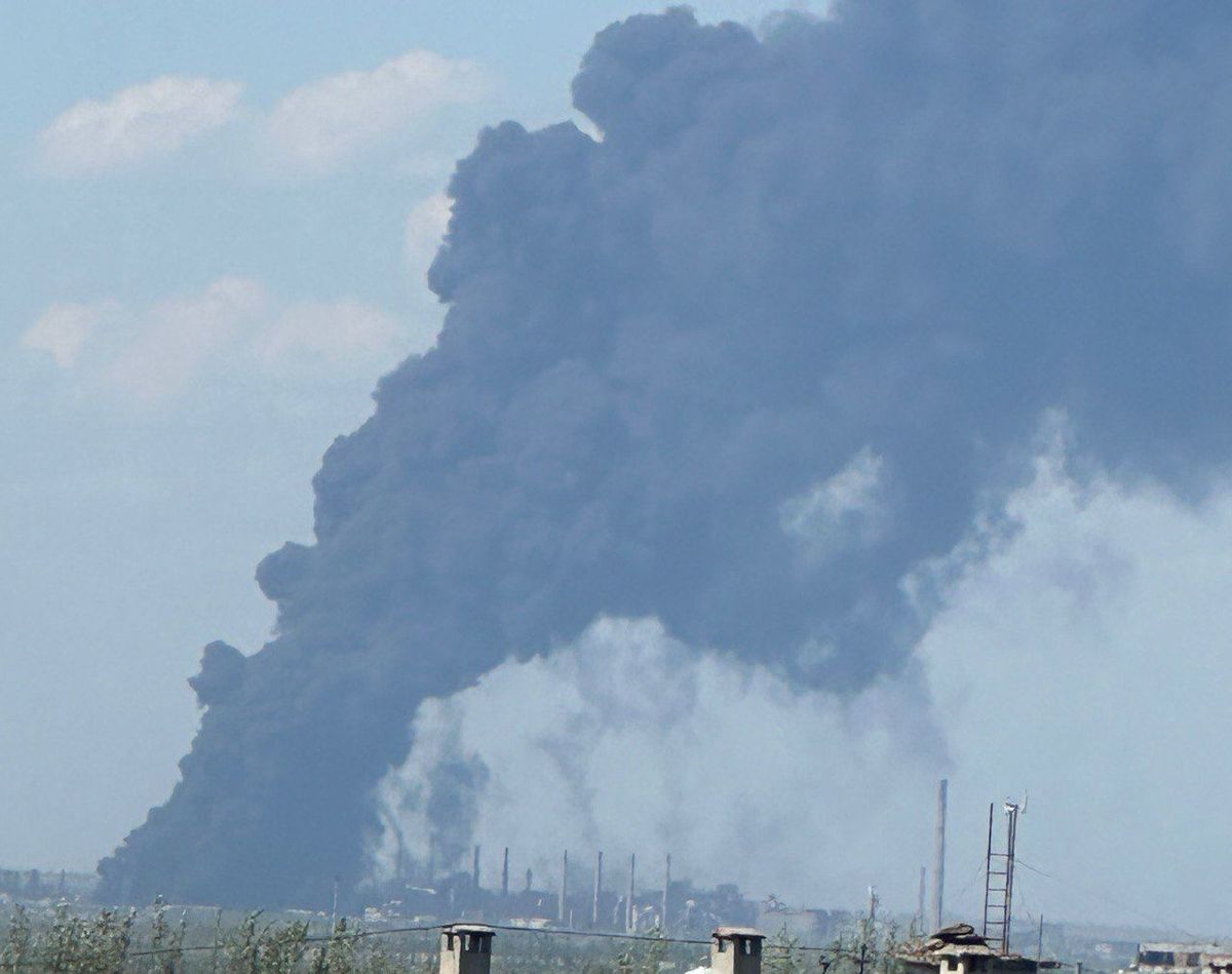 Згодом місцеві телеграм-канали почали повідомляти про “бавовну” й у стороні окупованої Авдіївки. Там також утворився величезний стовп диму, який подекуди закривав сонце у небі.