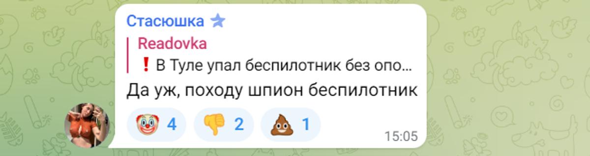 У мережі вже почали обговорювати падіння невідомого БПЛА. Зокрема, самі ж росіяни зауважили, що останнім часом у їхній країні все більше подібних новин.